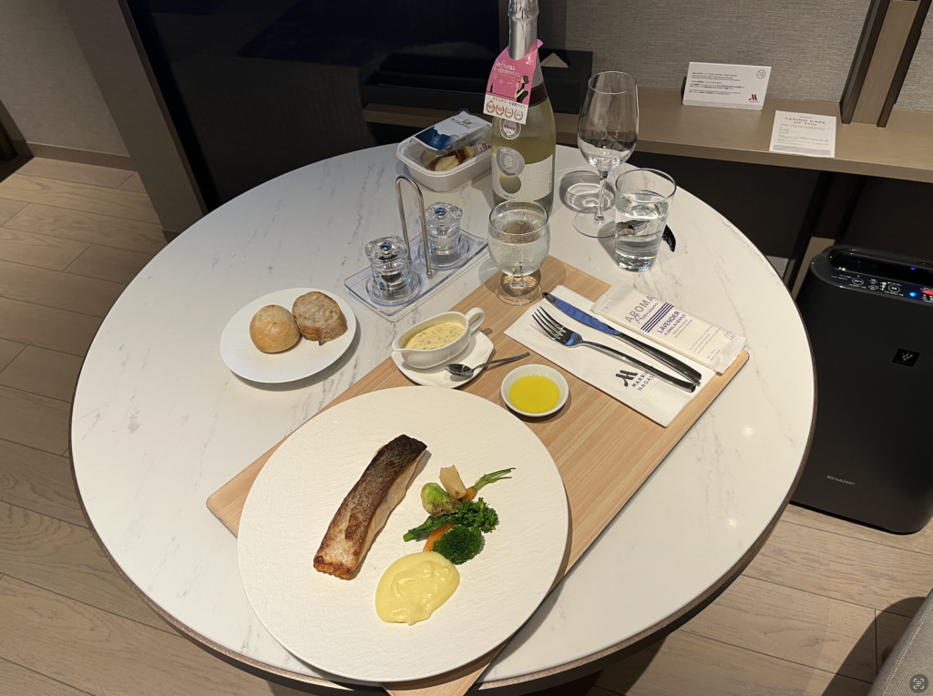 ワインは五島ワイナリーというところのを持ってきたので、持参して部屋で楽しみました。
